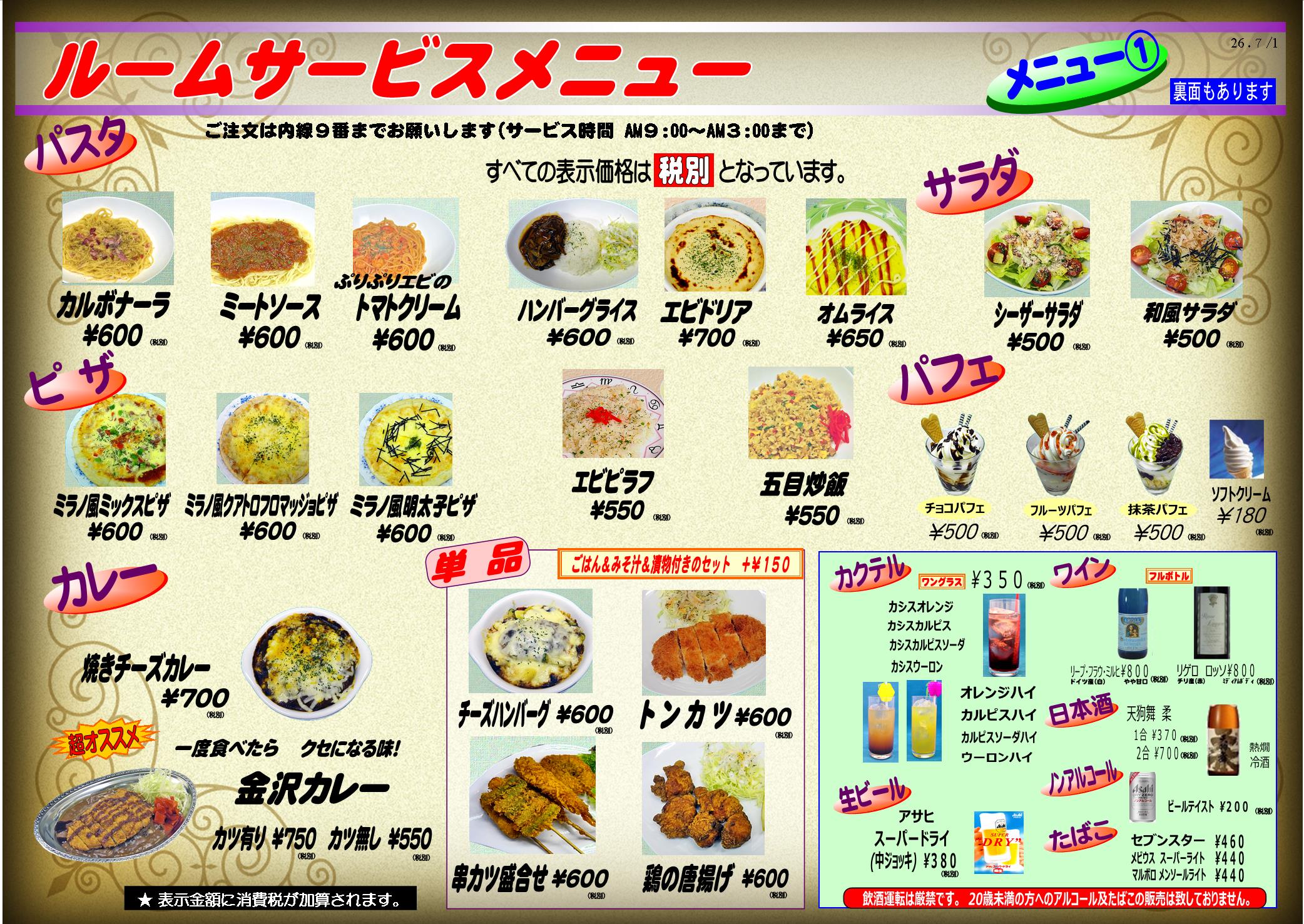 ルームサービスのご案内
