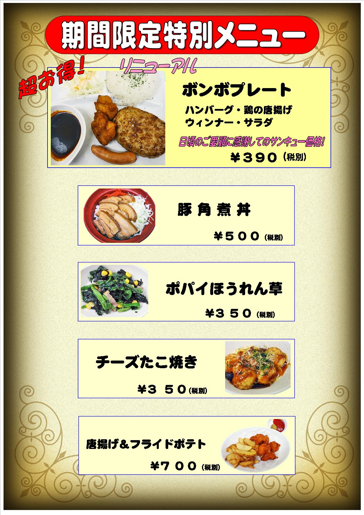 期間限定特別メニュー